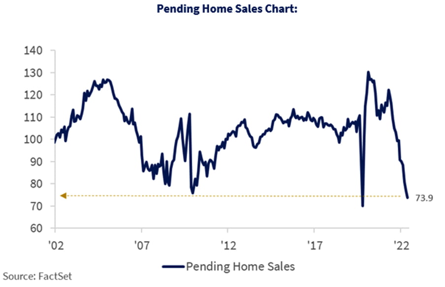 Pending home sales fell for the sixth consecutive month in November and existing home sales continued their weakness falling for the tenth consecutive month in November. Higher mortgage rates, inflation and a slowing US economy are starting to cool down this once hot market, representing another set of positive indicators demonstrating a potential trend towards lower inflation.