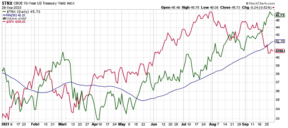 Ten-Year Treasury Yield vs. The S&P 500 Index